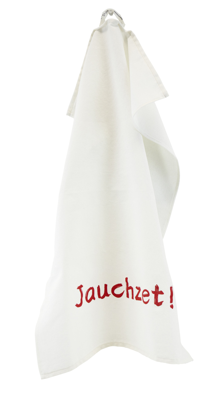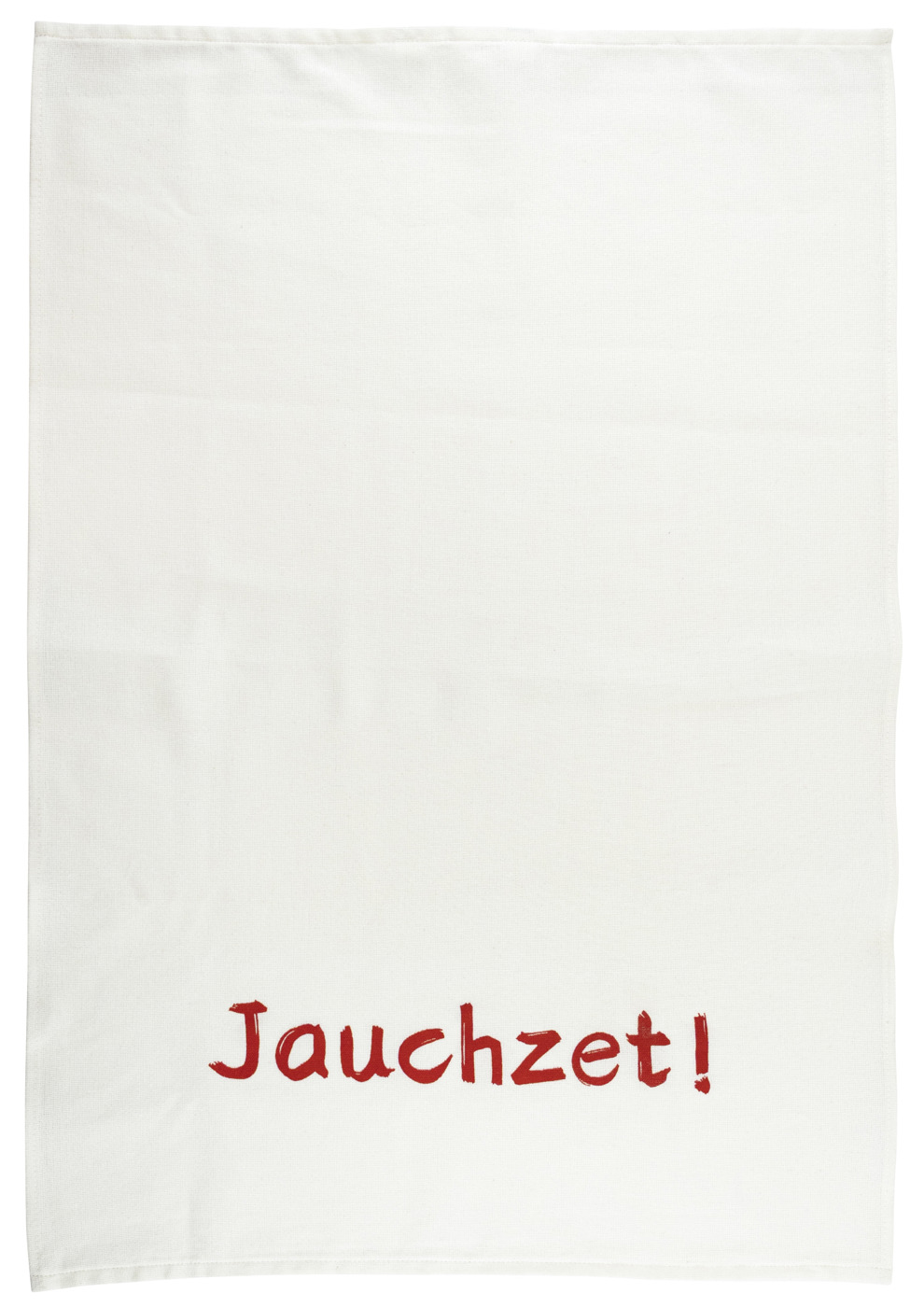 Geschirrhandtuch (50 x 68,5cm) cremeweiß mit Aufdruck Jauchzet! aus 100% Baumwolle (Öko-Tex Standard 100) in edler Geschenkverpackung, Maschinenwäsche bis 60°C