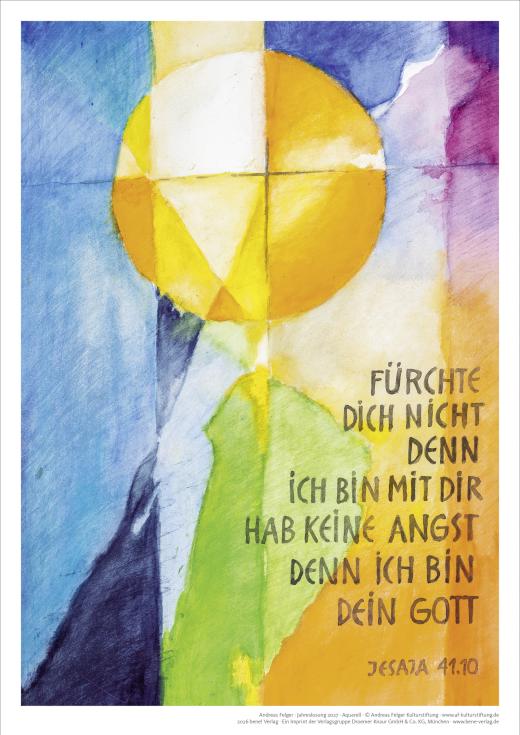 Das Motiv zur Jahreslosung 2027 des Künstlers Andreas Felger interpretiert den biblischen Text in leuchtenden Farben.