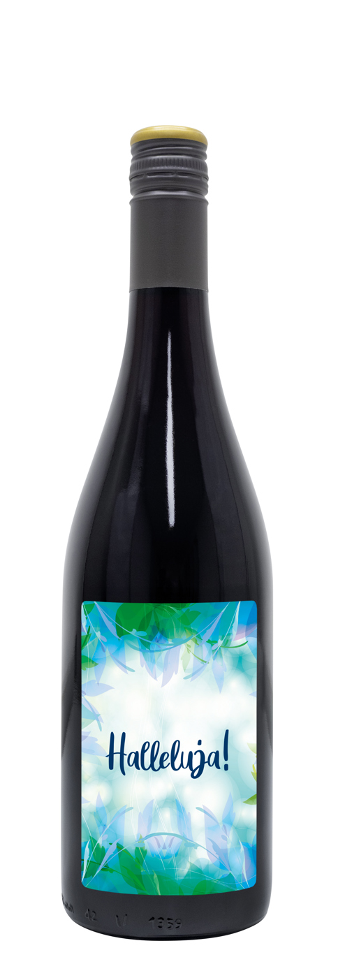 Rotwein mit Etikett "Halleluja" (10,53 EUR/Liter)