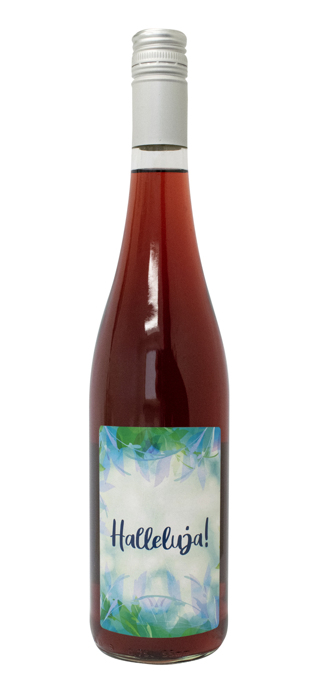 Rotwein mit Etikett "Halleluja" (10,53 EUR/Liter)