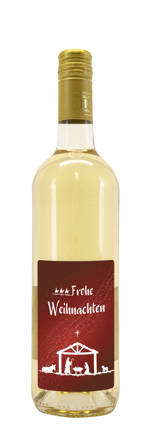 Weißwein mit Etikett "Gesegnete Weihnachten" (10,53 EUR/Liter), Gr. Burg
